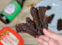 - Slice beef into 1/6" – 1/4" slices, ensuring all are the same thickness. We prefer to go against the grain when slicing, which results in a more tender jerky. Slicing with the grain will give the jerky a tougher texture.